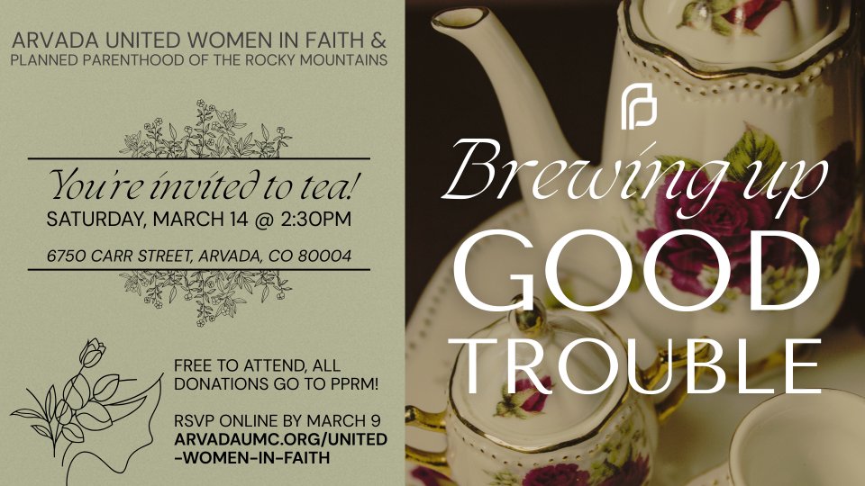 You're invited! Join Arvada United Women in Faith and Planned Parenthood of the Rocky Mountains for an afternoon of tea and some good trouble.