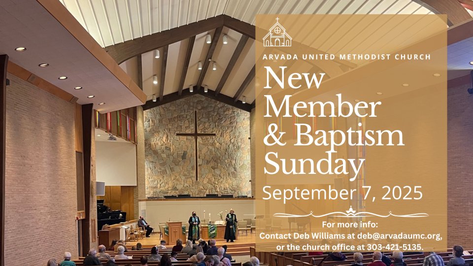 To learn more about membership at AUMC, please contact the church office, deb@arvadaumc.org or call 303-421-5135.
