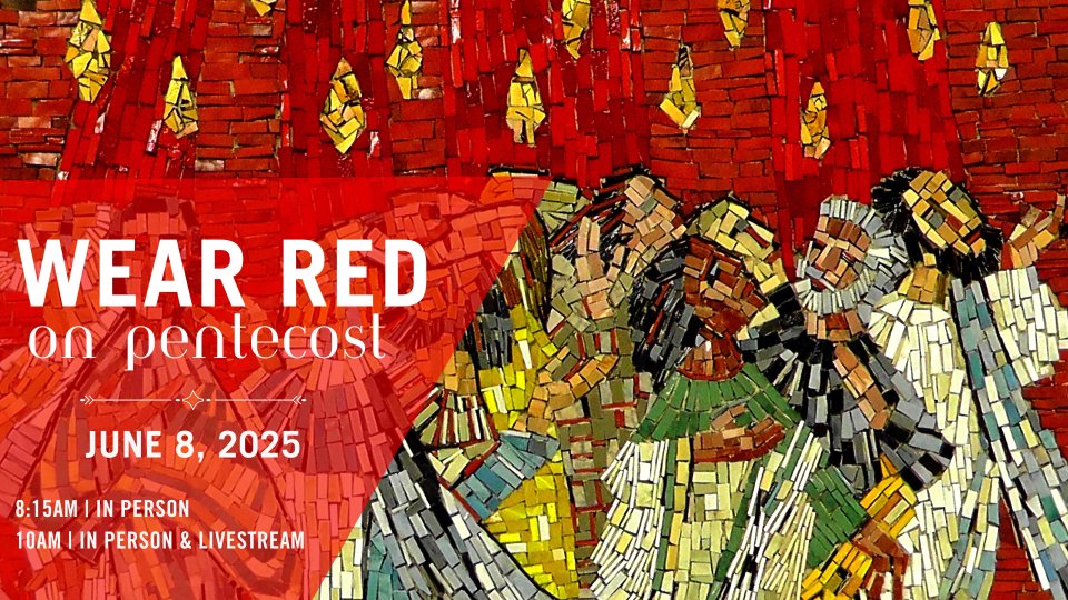 Red is the color of Pentecost, symbolizing the Holy Spirit's arrival with tongues of fire. Go through your closets and find red clothes to wear to church on Pentecost Sunday to join in the celebration!