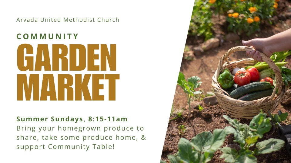 Bring your homegrown produce to share, take some produce home, & support Community Table! The garden stand is located outside the front doors of the church every Sunday during the summer months.