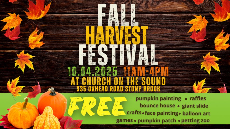 Join us for a FREE fun-filled day at our FALL HARVEST FESTIVAL on Saturday, October 4th, 11AM-4PM at Church on the Sound.