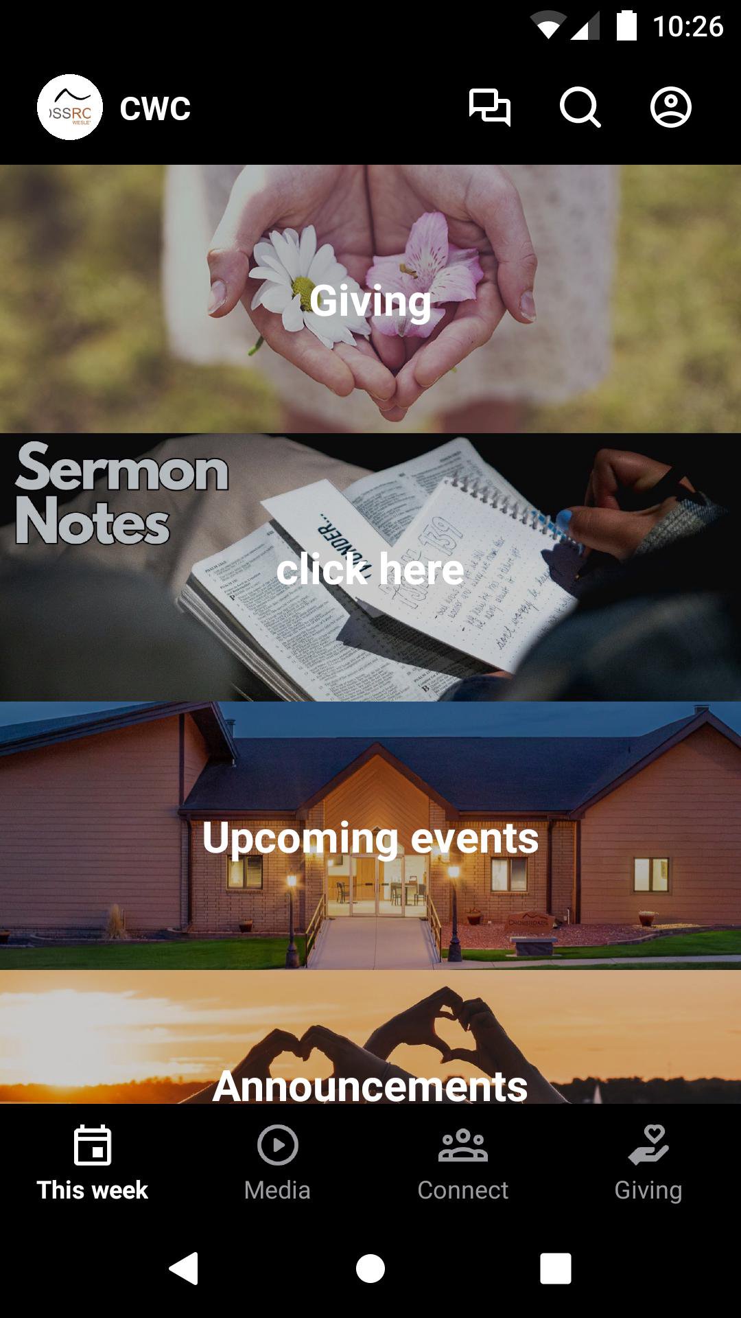 This app will help you stay connected with the day-to-day life of our church. With this app you can: watch or listen to past messages; stay up to date with push notifications; share your favorite messages via Twitter, Facebook, or email; and download messages for offline listening.