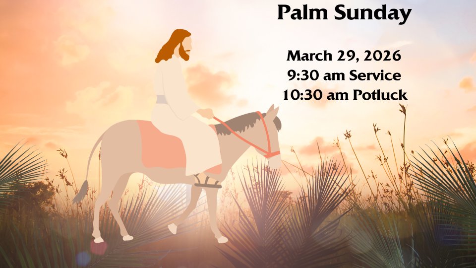 March 29, Palm Sunday Potluck, Ham will be provided.