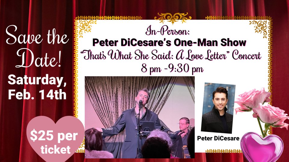 In-Person: Peter DiCesare’s One-Man Show “That’s What She Said: A Love Letter” Concert, Sat., Feb. 14, 8 pm -9:30 pm
