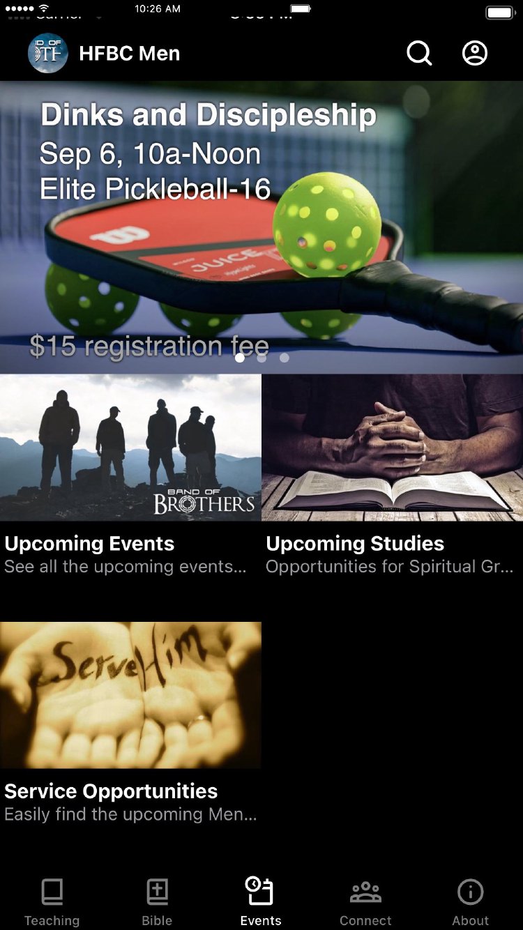This app provides information about the "Band of Brothers," the Men's Ministry of Houston's First Baptist Church. It includes upcoming events, podcasts, ongoing studies for men, and so much more. You can even promote our studies and events through your own social media with the touch of a button. Stay involved, up to date, and spread the word!!!