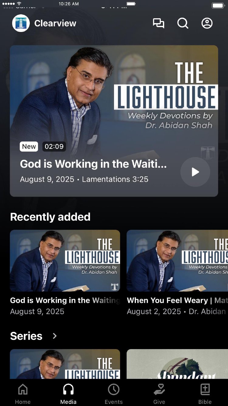 This app will help you stay connected with the content of Clearview as well as stay informed about upcoming events. With this app you can: - Watch or listen to past messages - Stay up to date with push notifications - Share your favorite messages via Twitter, Facebook, or email - Download messages for offline listening - Give online - And more! Download the official Clearview Church app today!