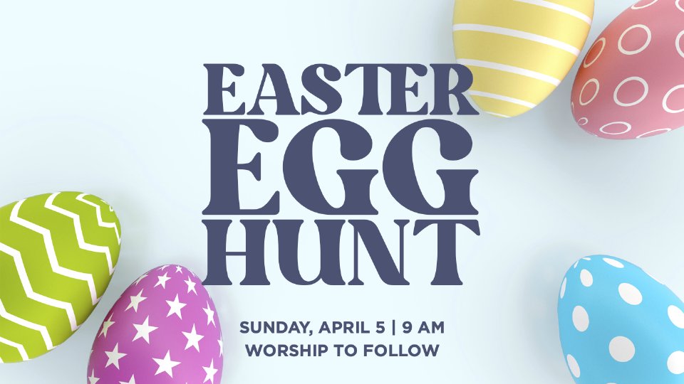 Egg Hunt check-in begins at 9 AM on the blacktop between the church building and the playground.