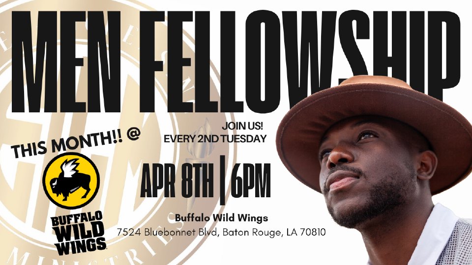 Join us for our Men's Fellowship Night every 2nd Tuesday of each month! This month we will meet at Buffalo Wild Wings on Bluebonnet at 6PM! See you there!