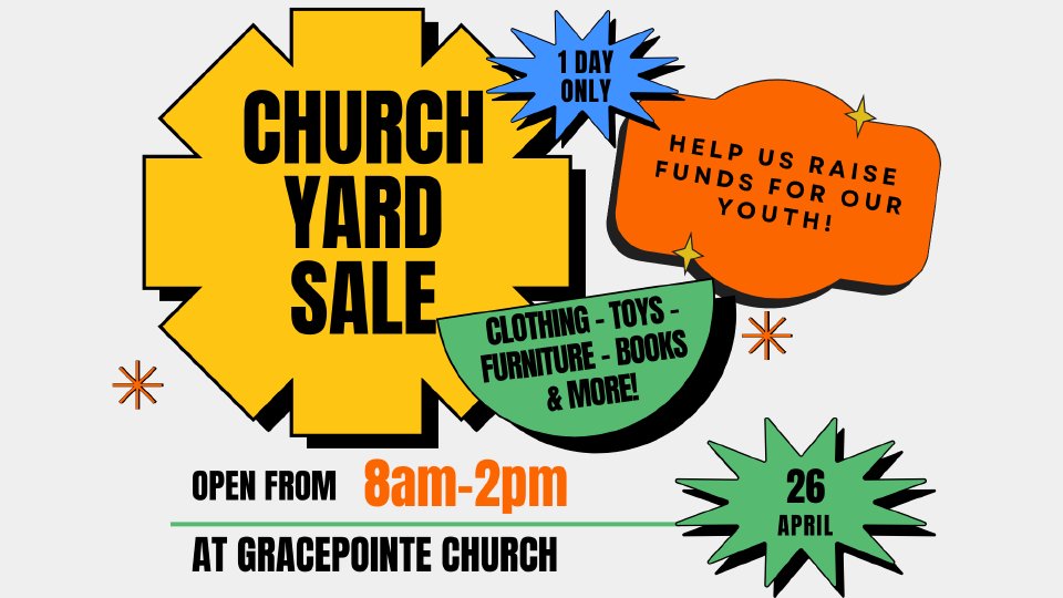 GPC, who doesn't love getting up on a Saturday morning to go yard saleing?! We will be holding a HUGE church yard sale on April 26th from 8-2pm. Invite everyone you know and come on out to find some treasures!!!