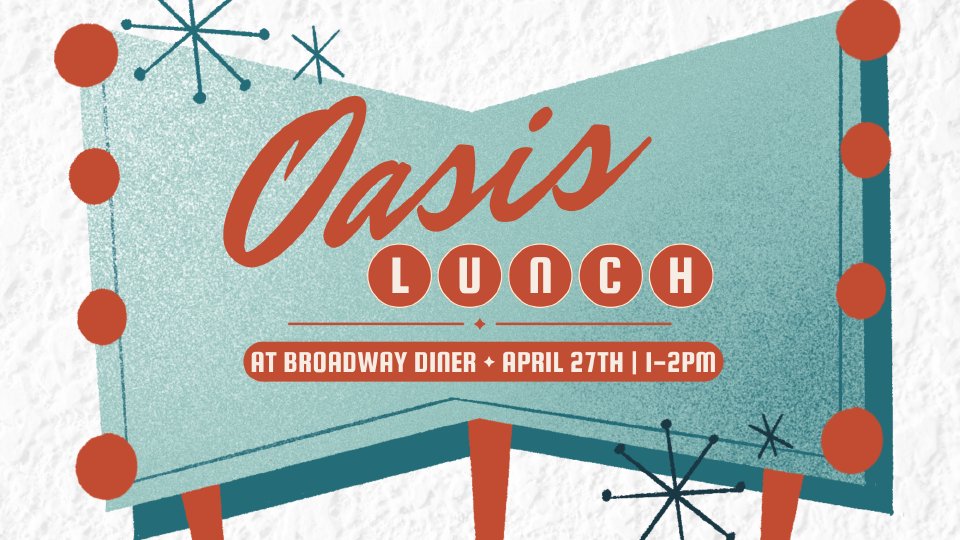 Join us for a wonderful time of food, fellowship, and fun at our Oasis Luncheon. We will be meeting immediately after service at Broadway Diner Sunday, April 27th. We look forward to a blessed time together.