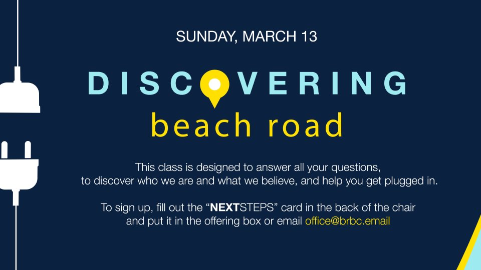 This class is designed to answer all your questions and help you “look under the hood’ of Beach Road to discover who we are and what we believe. Email office@brbc.email to learn more.