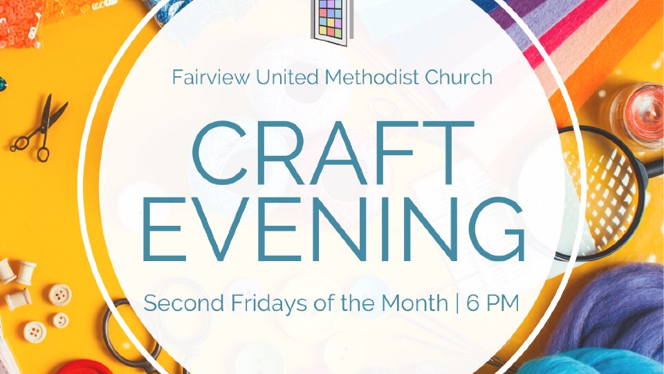 Come to the church office/library on Second Fridays at 6 PM for fun, fellowship and crafts! This is a BYOC (bring your own craft) evening. We'll order in dinner, bring some food, or eat before you come. Let's make something great together!