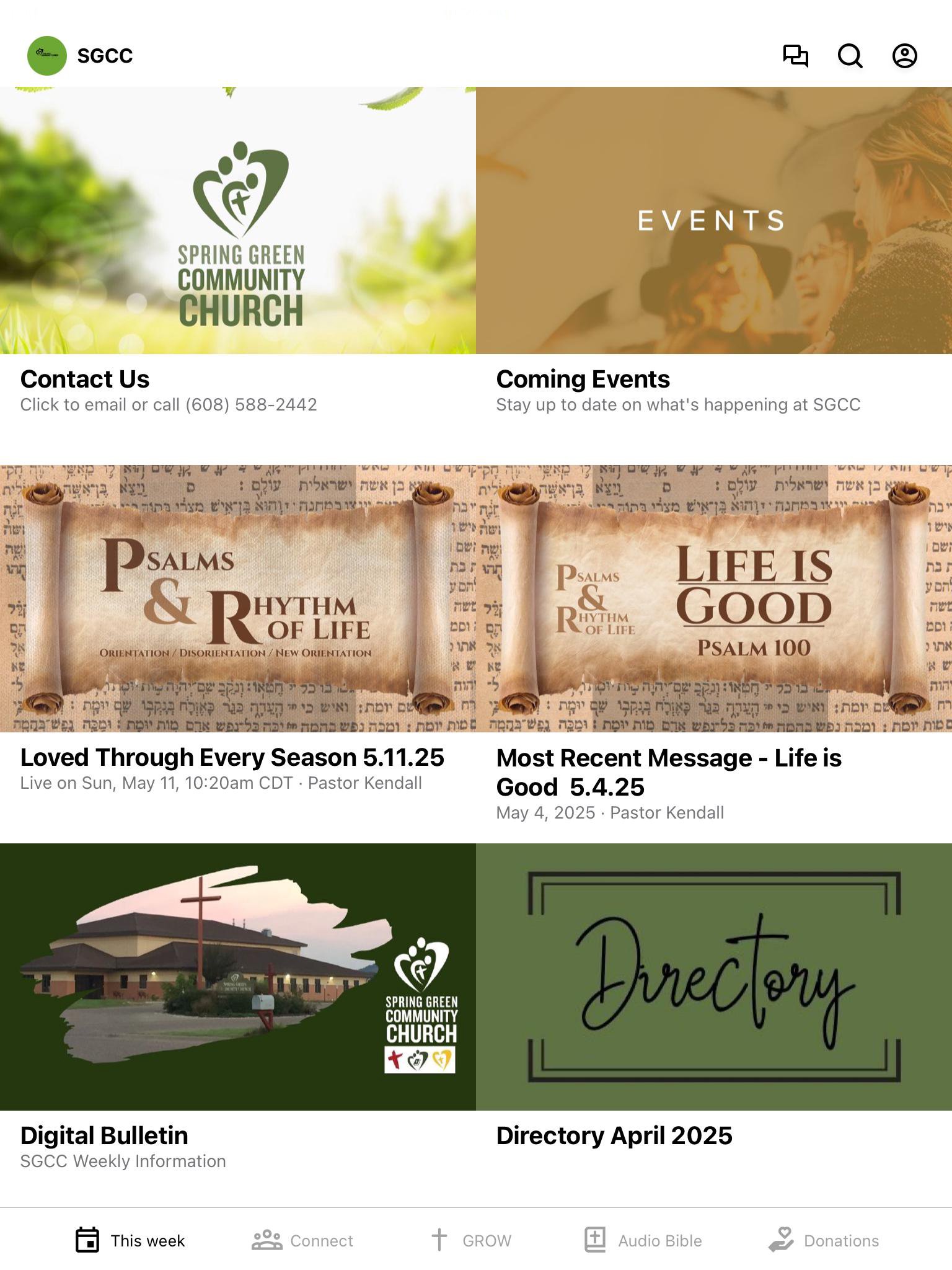 This app will help you stay connected with the day-to-day life of our church. With this app you can: watch or listen to past messages; stay up to date with push notifications; share your favorite messages via Facebook, or email; and download messages for offline listening.