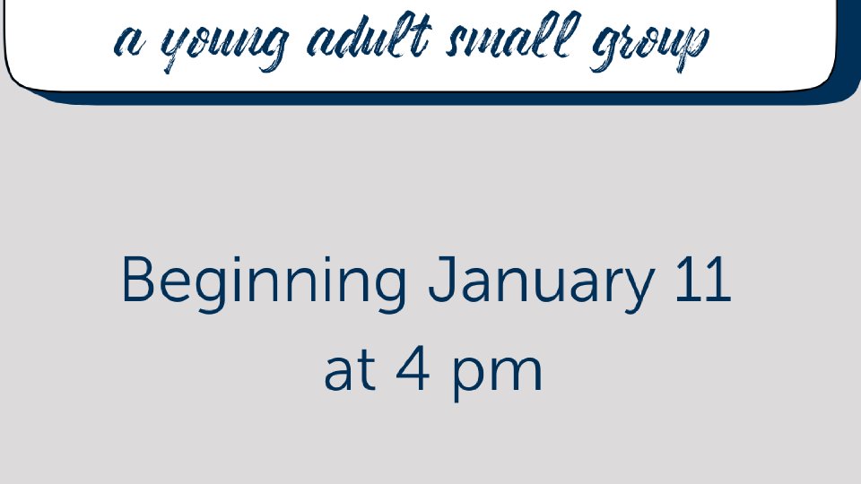 Sundays at 4pm come gather with other young adults for a time of fellowship and Bible study.
