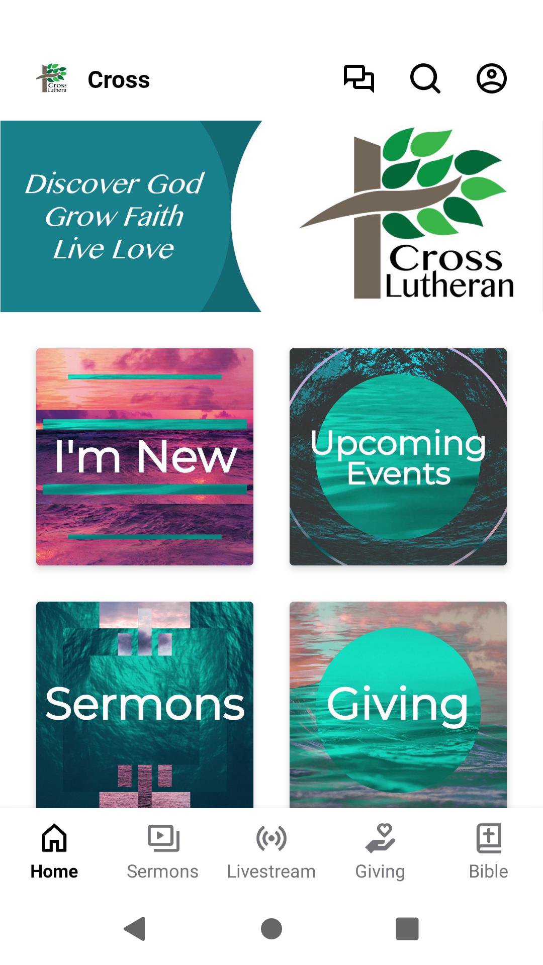 Stay connected at Cross Lutheran Church for all events, ministries, live-streamed worship services, group messaging, congregational updates, and electronic giving. Discover God, Grow Faith & Live Love!