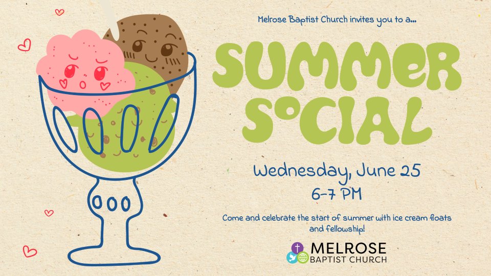 All are invited to join us for a sweet of celebration of the start of summer with ice cream floats and fellowship! Join us on Wednesday, June 25 from 6-7 PM! Ice cream floats are FREE and all are invited to join us!