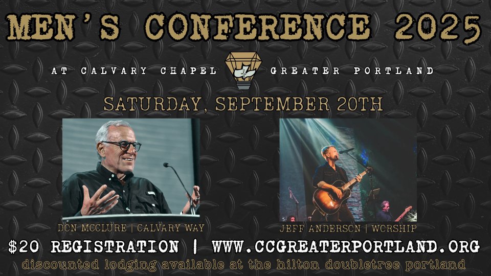 Men, join us for our annual fall men's conference with Pastor Don Mcclure. Check-in will begin at 8am Saturday, September 20th and the conference will conclude at 4PM. We will offer breakfast at the church, and break off at 12:15 and have lunch separately in the local Portland area.