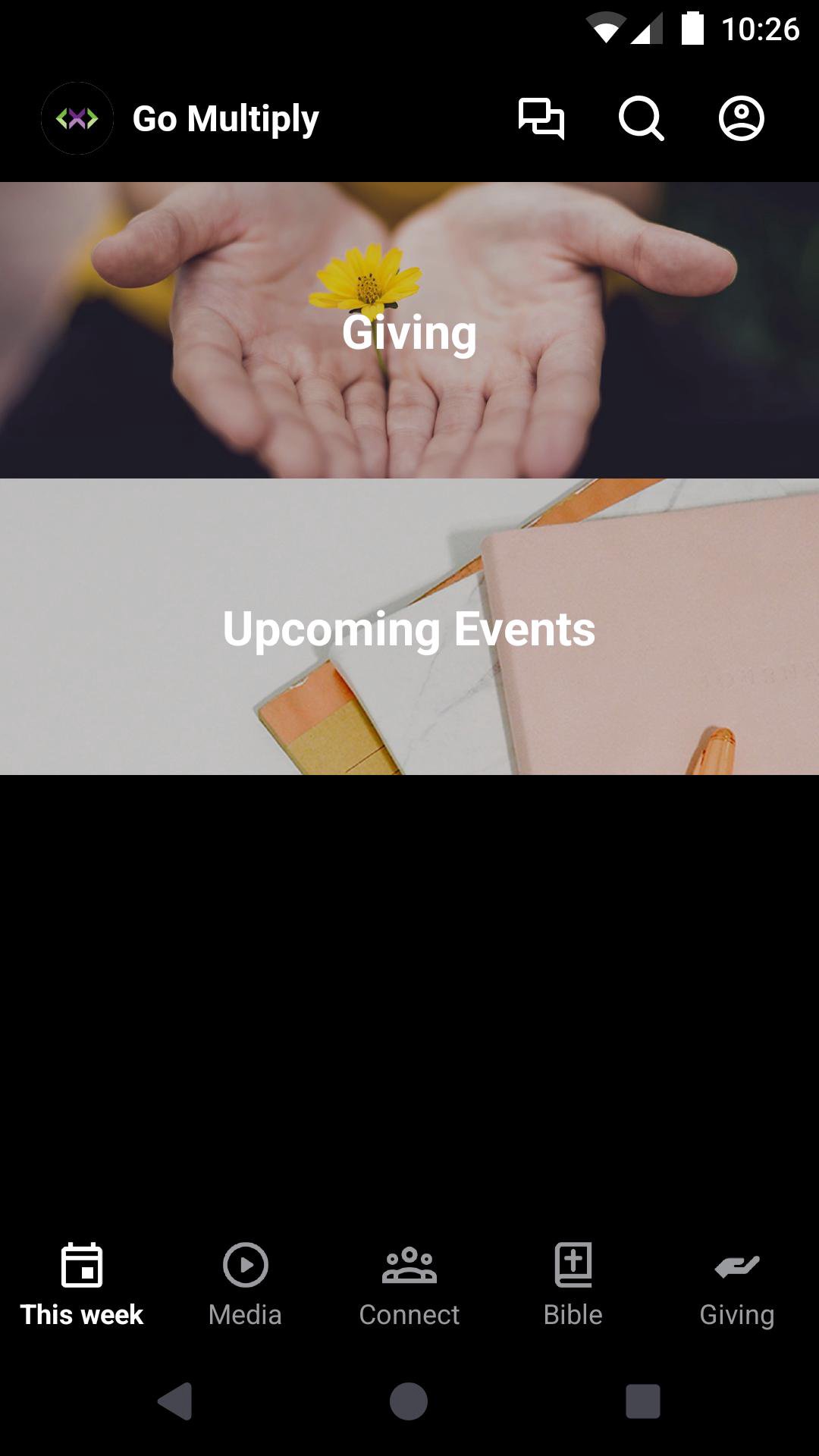 This app will help you stay connected with Go Multiply. With this app, you can watch or listen to past messages, stay updated with push notifications, read the Bible, and view our calendar.