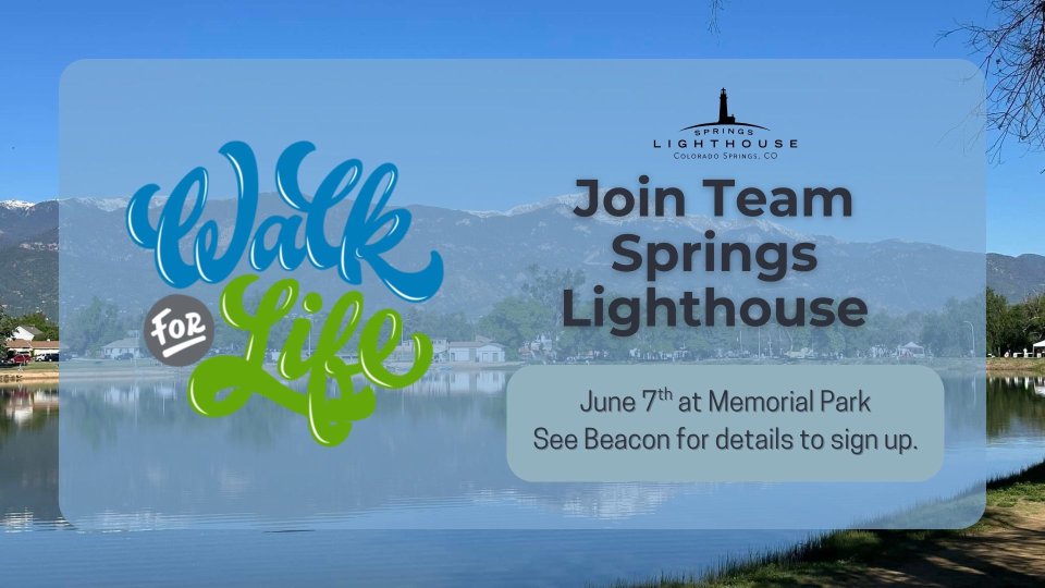 We’re excited to participate in this year’s Walk for Life, and we’d love for you to join Team Springs Lighthouse as we walk to support a vital cause! Our team captains are Ashley Beeman and Louella Pell, and they’ll be available at the info table in the sanctuary to answer any questions or help you get signed up.