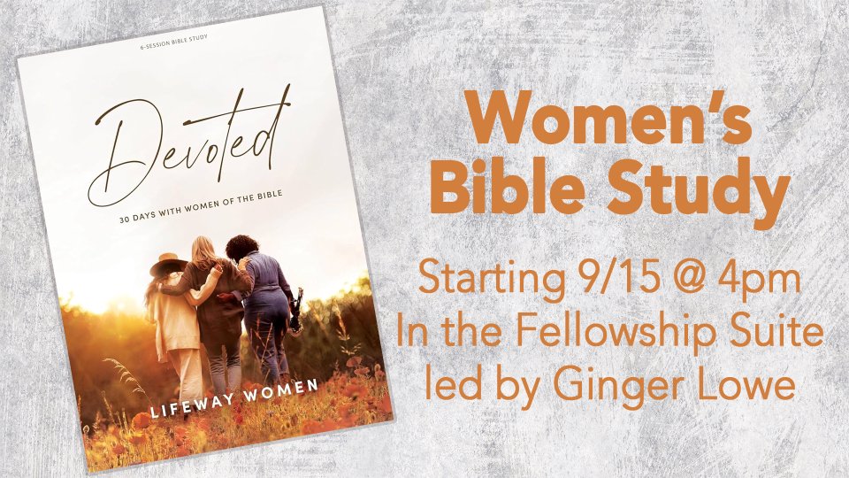 Join us each Sunday at 4pm in the Fellowship Suite for a study led by Ginger Lowe called, Devoted.