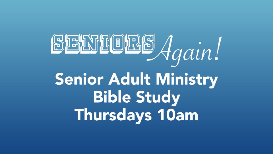 Every Thursday at 10am Senior Adult Bible Study in the Fellowship Suite