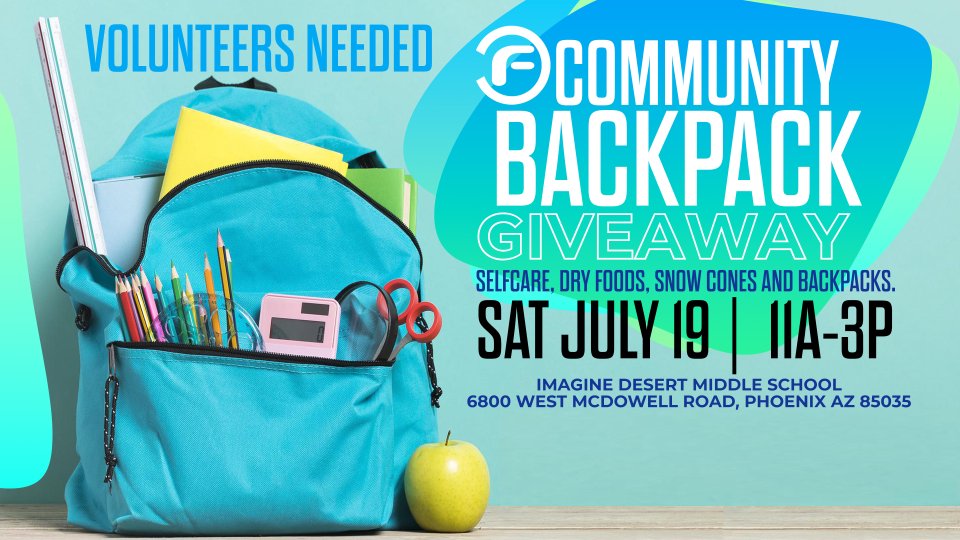 A backpack full of school supplies can take a big chunk of a family’s budget – more so if the family has several children in school. Join us on Saturday, July 19 for our Community Backpack Giveaway to help ease that concern for some of the families in our community.
