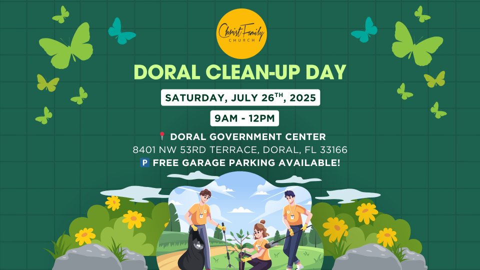 Join us on Saturday, July 26th, 2025, from 9:00 AM to 12:00 PM at the Doral Government Center for a community clean-up!