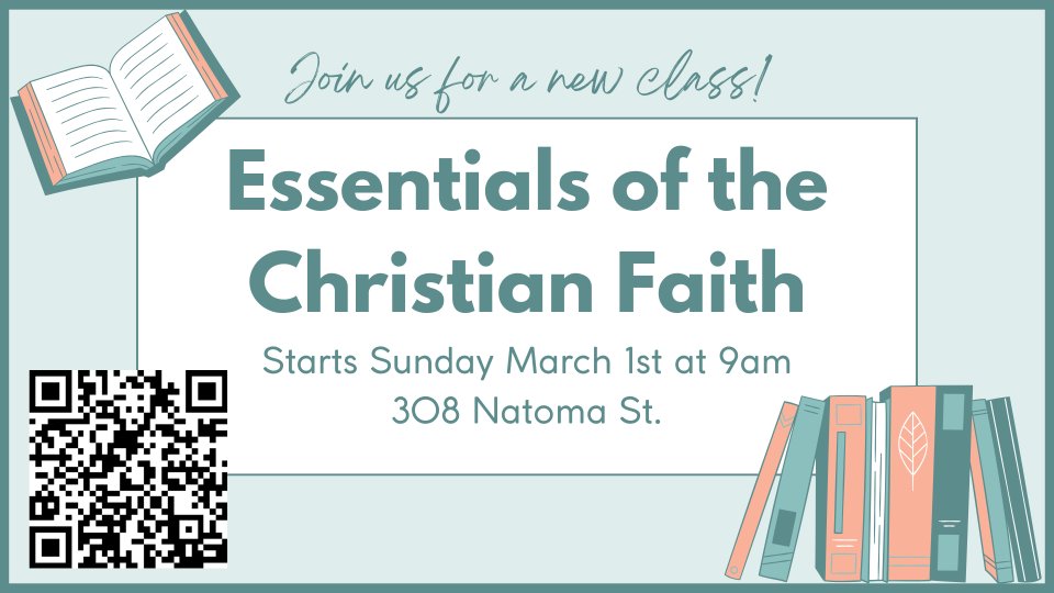 Join us for a 7 week class exploring Essential Doctrine, Essential Bible, Essential Church and Essential Prayer. The class will take place at 308 Natoma (Harbor