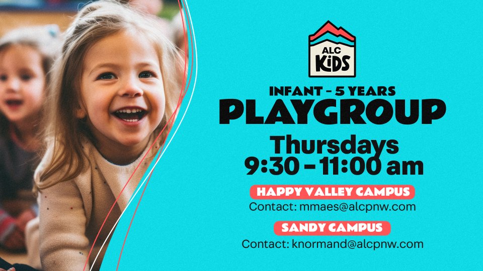 Parents, you, and your little ones (infant through 5 years) are invited to join us for playgroups at the Happy Valley Campus! We meet every Thursday morning from 9:30-11:00 am.