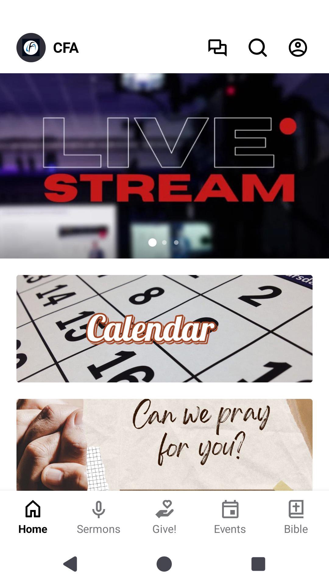 Welcome to Carlsbad First Assembly App! This app will help you stay connected with the day-today life of CFA! With this app you can: - Watch or listen to past sermons - Stay up to date with the latest events - Sign up for events as well - Make a secure gift - Sign up for our next water baptism as well as to find out about volunteer opportunities - Check out our social media feeds as well For more information about CFA visit our website at www.carlsbadfirst.com