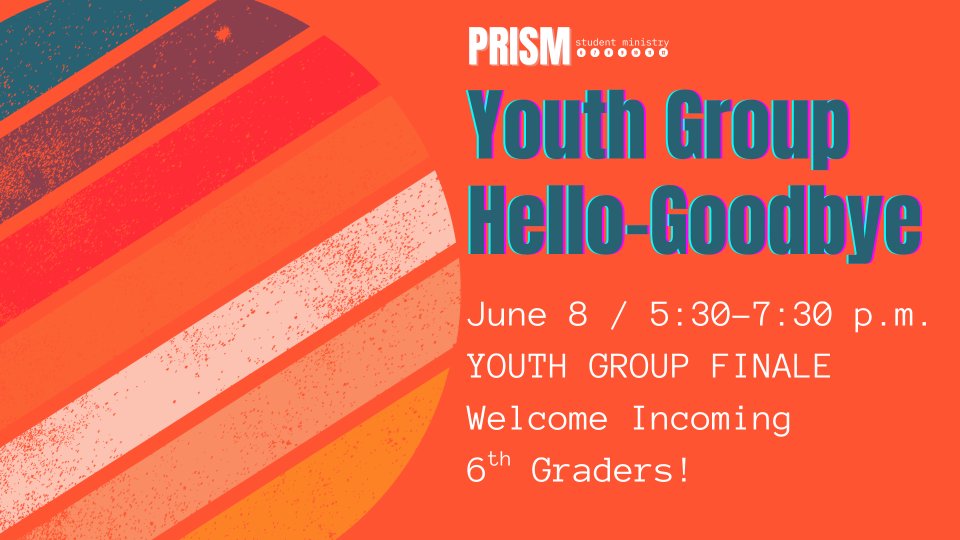 Join us as we say "hello" to incoming 6th graders and "goodbye" to the 24-25 school year. ALL parents are welcome to attend to participate in a night of youth group - especially those who will have new middle schoolers next year!