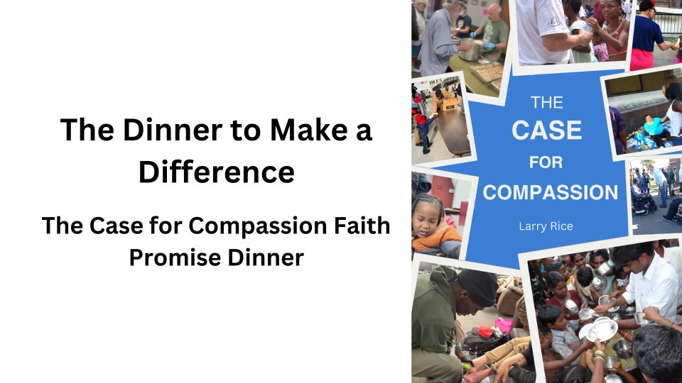 Each person attending will receive a delicious dinner at the Royale Orleans Banquet Center and a vision of how they can make a big difference among the hurting and homeless this winter. To help implement this vision those attending will receive a newly published copy of The Case for Compassion, which will give directives on fulfilling this mission.