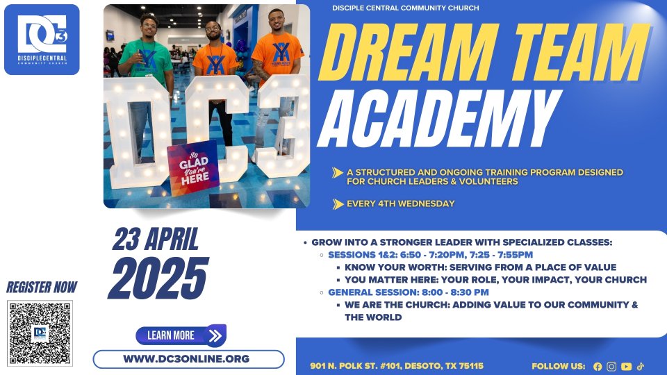 Join us every 4th Wednesday for Dream Team Academy! (Formerly known as Disciple Development)