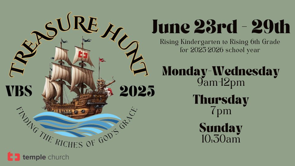 Thank you for your interest in serving at Vacation Bible School this year at Temple Church!