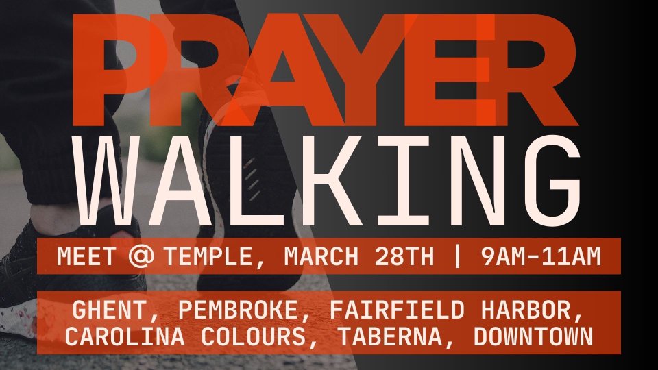 We will gather in the church Worship Center at 9am for debriefing and training before splitting into groups to prayerwalk for about an hour. This is not door-to-door evangelism. This is walking the neighborhoods around Temple asking God to draw people to our Easter events to hear the Gospel.