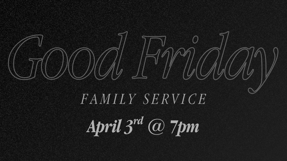 You're invited to our Good Friday family service, April 3rd at 7pm as we reflect on our Savior's sacrifice.