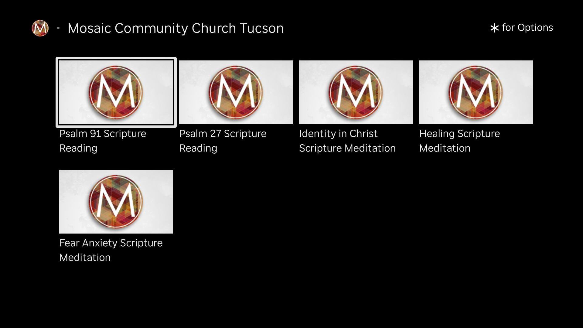 This app is where you can: - Watch or listen to Mosaic Community Church messages - Stay up-to-date and sign-up for upcoming events - Download messages for offline listening - Make a secure gift