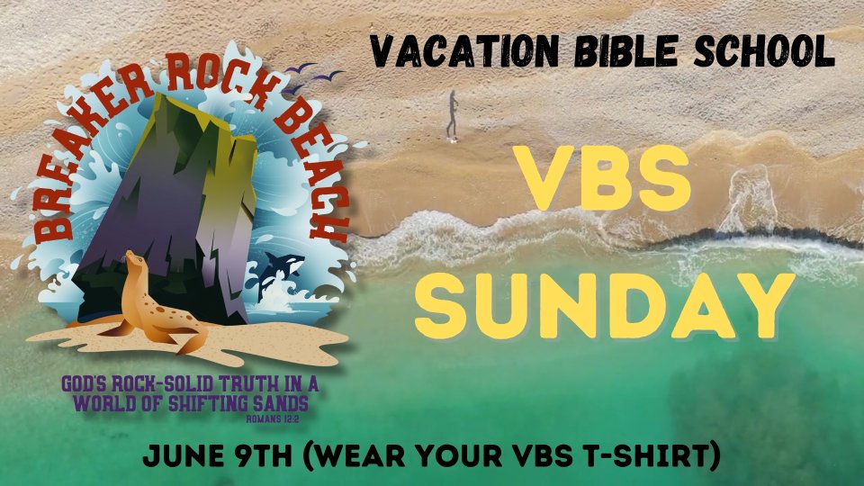 Join us to celebrate Vacation Bible School during the Worship Service on June 9th. Wear your VBS T-Shirt if you purchased one. We will NOT be having K4C. We will take kiddos over to the Worship Center that attend Sunday School.
