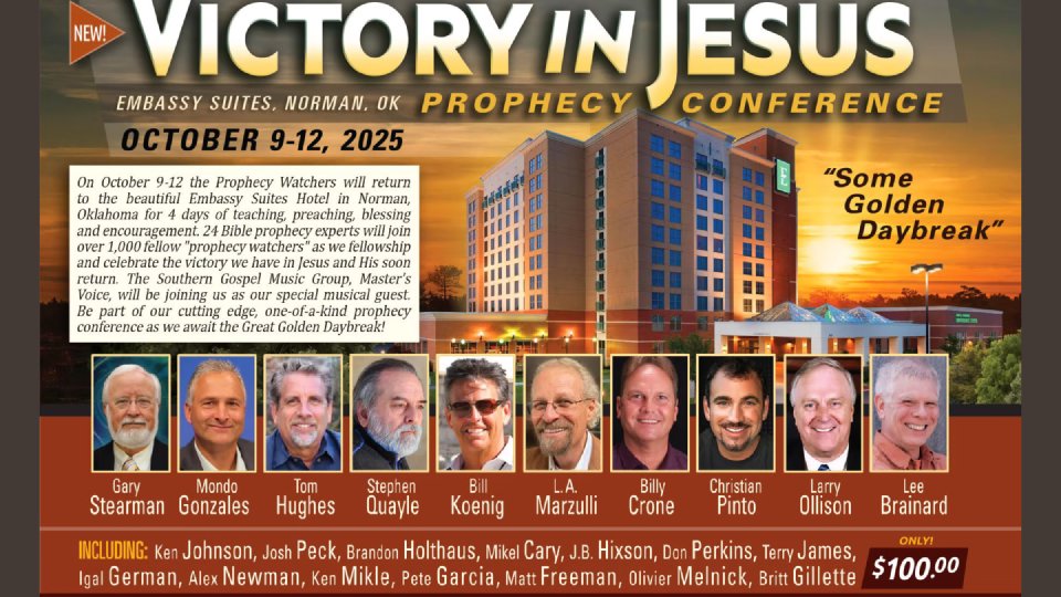 Visit the conference page from Prophecy Watchers for more info and to register: www.victoryinjesusprophecyconference.com/