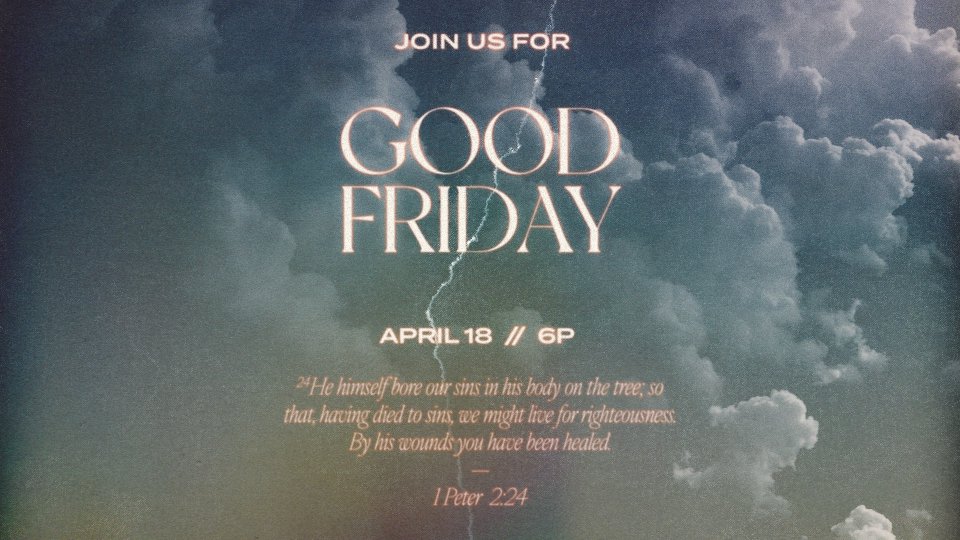 Join us for a Good Friday gathering on Friday, April 18, at 6p. This will be a powerful hour of prayer and worship, as we remember and reflect on the sacrifice Jesus made on the cross and prepare our hearts to celebrate His victorious resurrection on Easter Sunday. We hope you'll be part of this meaningful time together!