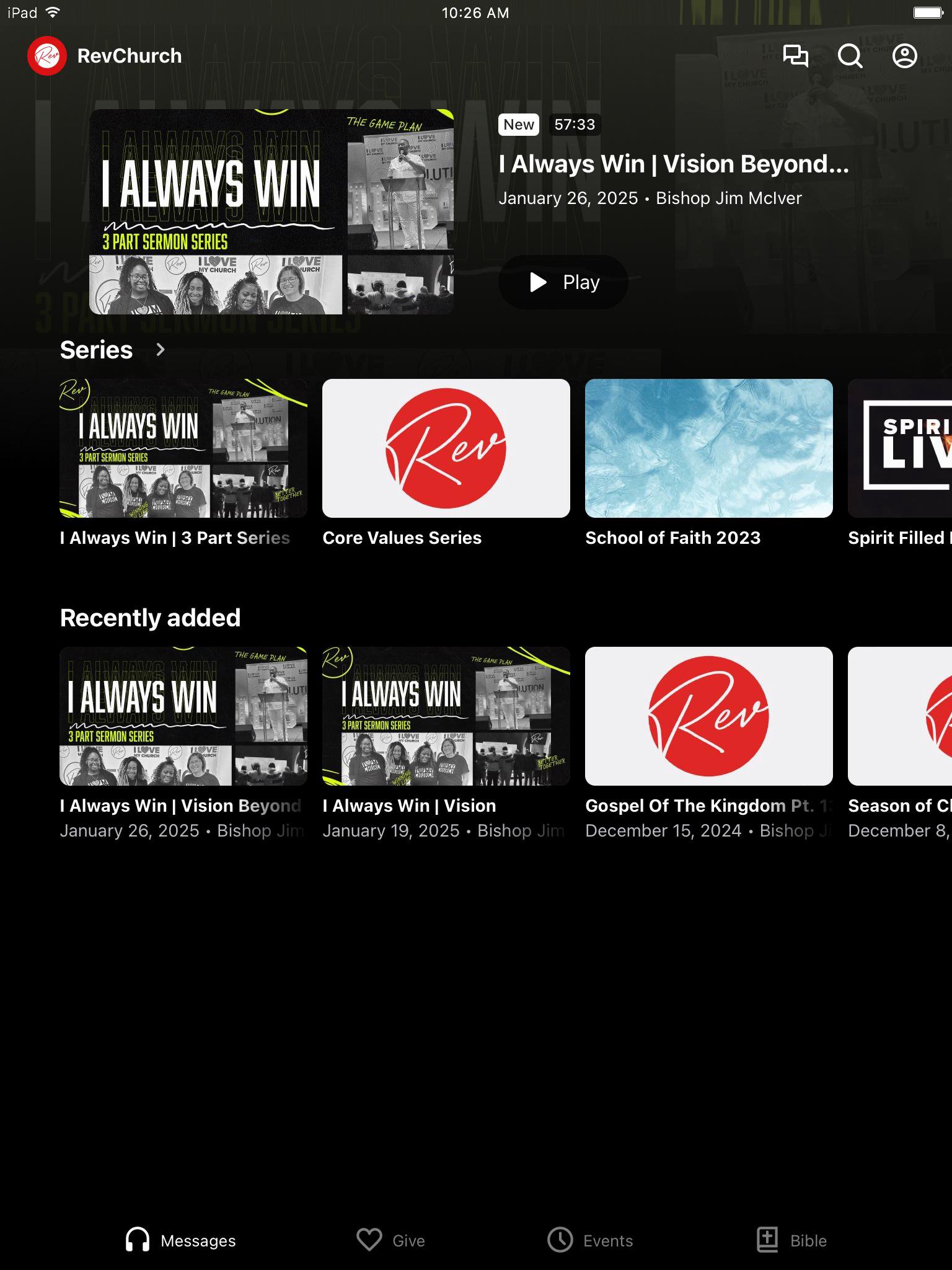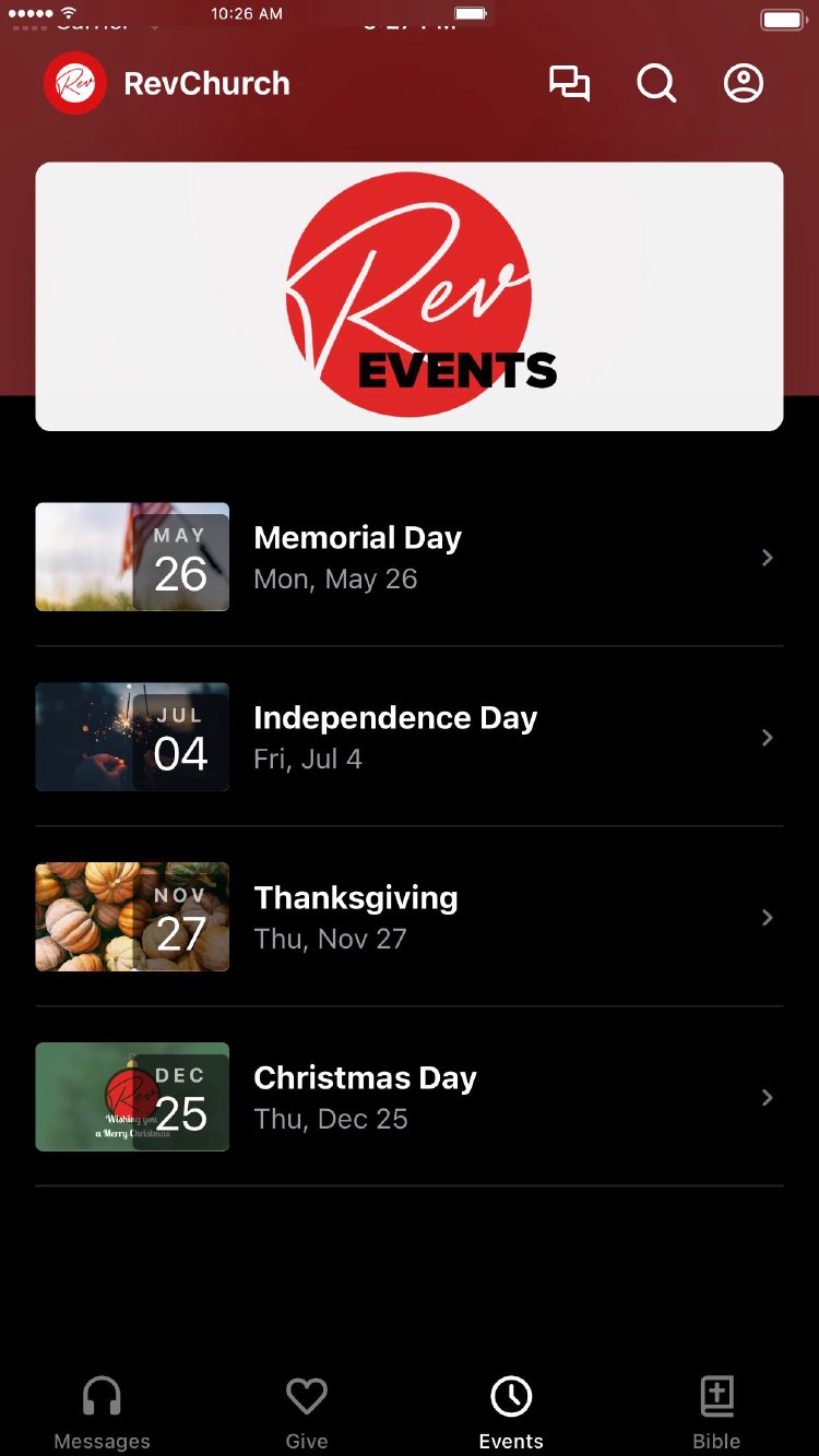Download this app to connect and grow with Revolution Church. With this app you can: - Listen to the most recent sermons - Give donations securely - View and sign-up for events - Connect with others using our in app messaging