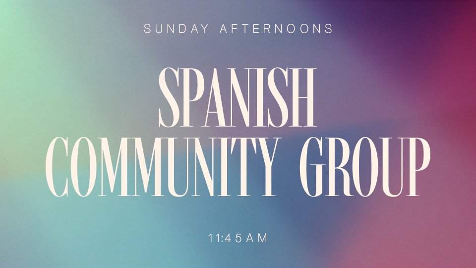 Hola, amigos. Queremos informarles de un grupo Latino que tenemos los domingos a las 11:45 aquí en la iglesia. Almorzamos juntos y tenemos un tiempo de reflexión sobre un pasaje bíblico y oración. Todo está en español. Terminamos a la 1:00pm.