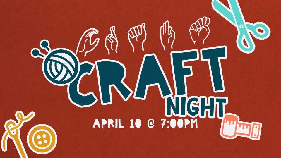 Join us for a relaxing evening of creativity and fellowship! Our Deaf Ministry is hosting a Craft Night, and we would love to see you there. Whether you are fluent in ASL, a student, or just curious to learn more about our community, our doors are open to everyone.