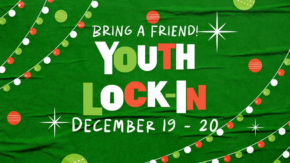 Grades 6-12, cancel your plans! You're invited to our FREE all-night Christmas Lock-In!