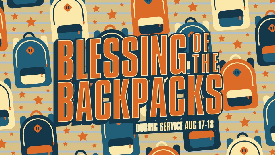 Students are invited to bring their backpacks to worship as we pray for them and the upcoming school year. Backpack tags will be available for students to put their information on and loop onto their bags. Additionally, since Francis Howell is returning to school this week, we will be promoting kids in the Shepherd Kids classrooms to their new grade levels.