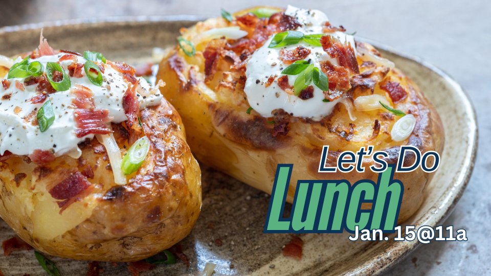 Want a kick to the winter "blahs"...join us on Jan.15th@11a for Let's Do Lunch! Come at 11a to play games: Dominos, Farkle, Uno. Then at 11:45 taste the best Potato Bar west of the Mississippi! Make sure you stick around@12:15 for a heated game of Bingo, with our time wrapping up at 1:00p. We love to invite, so bring a friend and enjoy the time together. If this is your 1st time, no need to bring anything, but if you are a regular go ahead and bring a side. Last name A-L bring a salad and M-Z bring a dessert. RSVP today! Any questions: gina_brinkman@coswired.org
