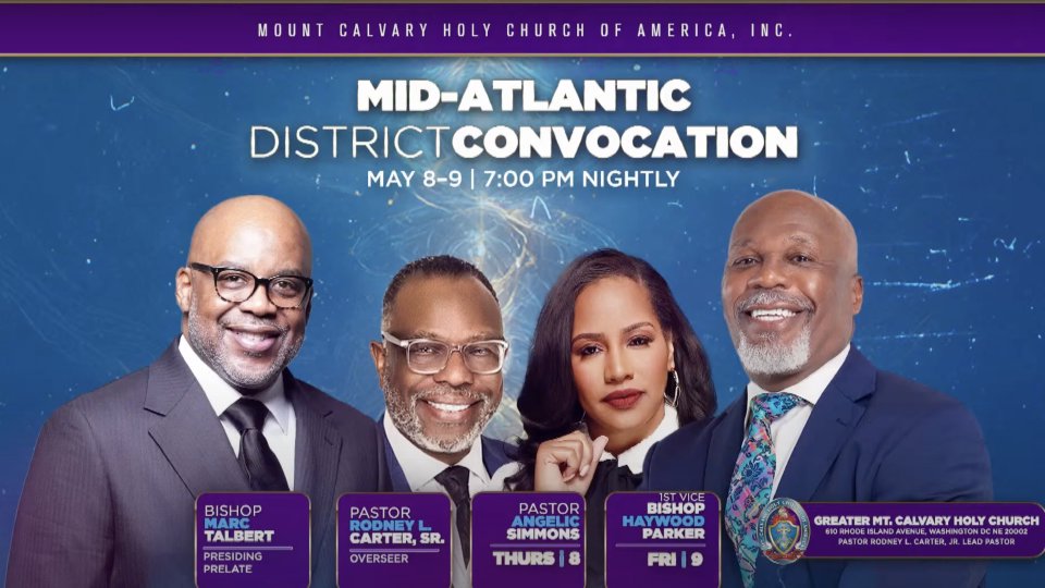 The Mount Calvary Holy Church of America Mid-Atlantic District Convocation is here — and we’re gathering for a powerful time of worship, Word, and fellowship! Churches from across the region will come together to celebrate our shared faith, strengthen our ministries, and experience a fresh move of God.