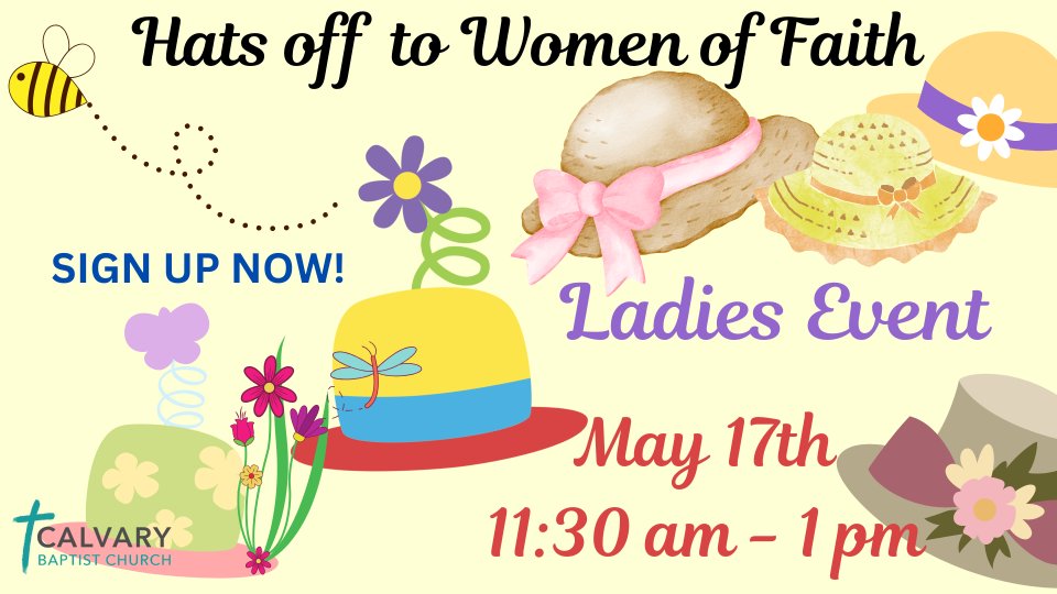 Come join us for a potluck luncheon as we celebrate Women of Faith. Wear your favorite hat and bring your favorite dish - see below for instructions! Our Worship Leader, Mindy Paschal, will be speaking! We can't wait to fellowship with you! Instructions for the potluck - if your last name starts with: