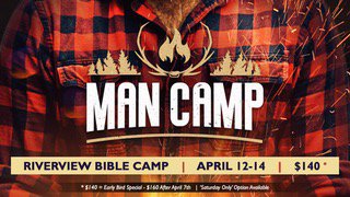 You will not want to miss this opportunity to hear from a great speaker, get away in a the beautiful environment, and have a ton of fun at the 2024 MAN CAMP. We will be partnering up with other churches from the Spokane area to make this a weekend to remember! Location: Riverview Bible Camp- 408771 State Rte 20, Cusick, WA 99119 Registration: Early Registration until 4/7/24: $140 After 4/7/24: $160 Full weekend registration includes two nights, and 4 meals: breakfast, lunch, dinner on Saturday and breakfast on Sunday. Snacks for Friday night also included but not a Friday night dinner. Saturday only registration : $60 Includes Saturday lunch and dinner- breakfast not included. Online registration requires credit/ debit card payment. Please contact your church office to acomidate cash or check payment. Check in: If you are attending all weekend, check in begins Friday 6pm at Riverview Bible Camp. Transportation: Transportation to and from camp is the responsibility of each participant. Check with your church pastor about carpooling options. Activities: Hiking trails, basketball gym, trap shooting, fishing, pistol and archery range, and other outdoor activities to enjoy in the beautiful scenery of the Pend Oreille river. Packing List: What to bring: Your bedding (sleeping in bunks with mattresses), two days worth of clothing and toiletries, ear plugs, BOOTS and some warmer clothes, Bible, notebook and pen. Suggested: a book if reading is your thing, snow shoes, games, extra snacks, a shotgun and ammo for trap shooting, or whatever else you want to do for fun. Leave all firearms in your vehicles. Don't bring: Bad attitude, alcohol, drugs, etc. Questions: For any questions please contact your church pastor or mens ministry leader.