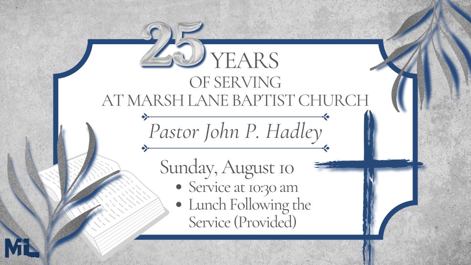 Want to know what faithfulness looks like? It's right here. Join us as we celebration 25 years of service by Pastor John to Marsh Lane Baptist Church.